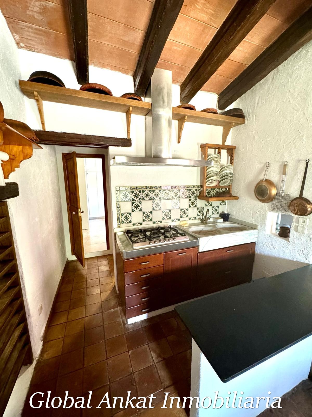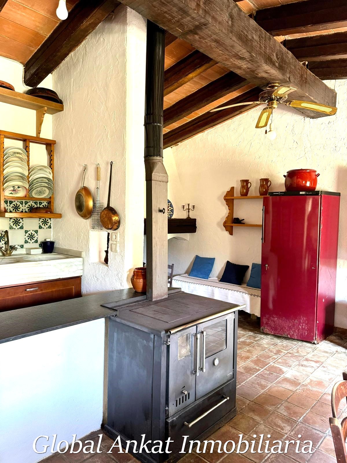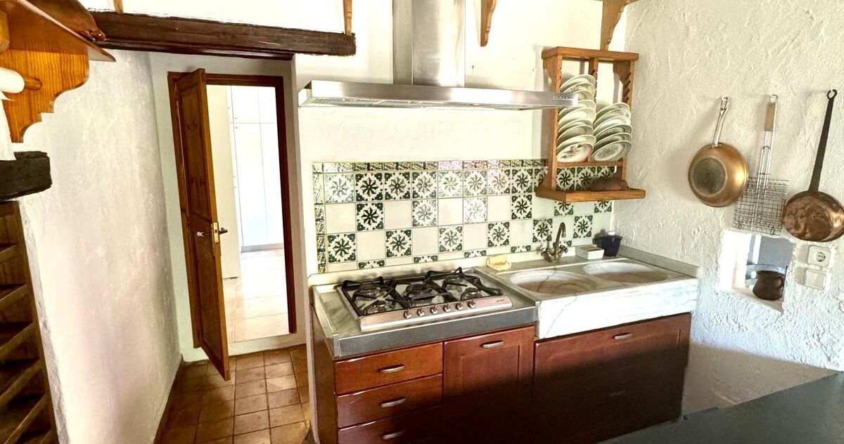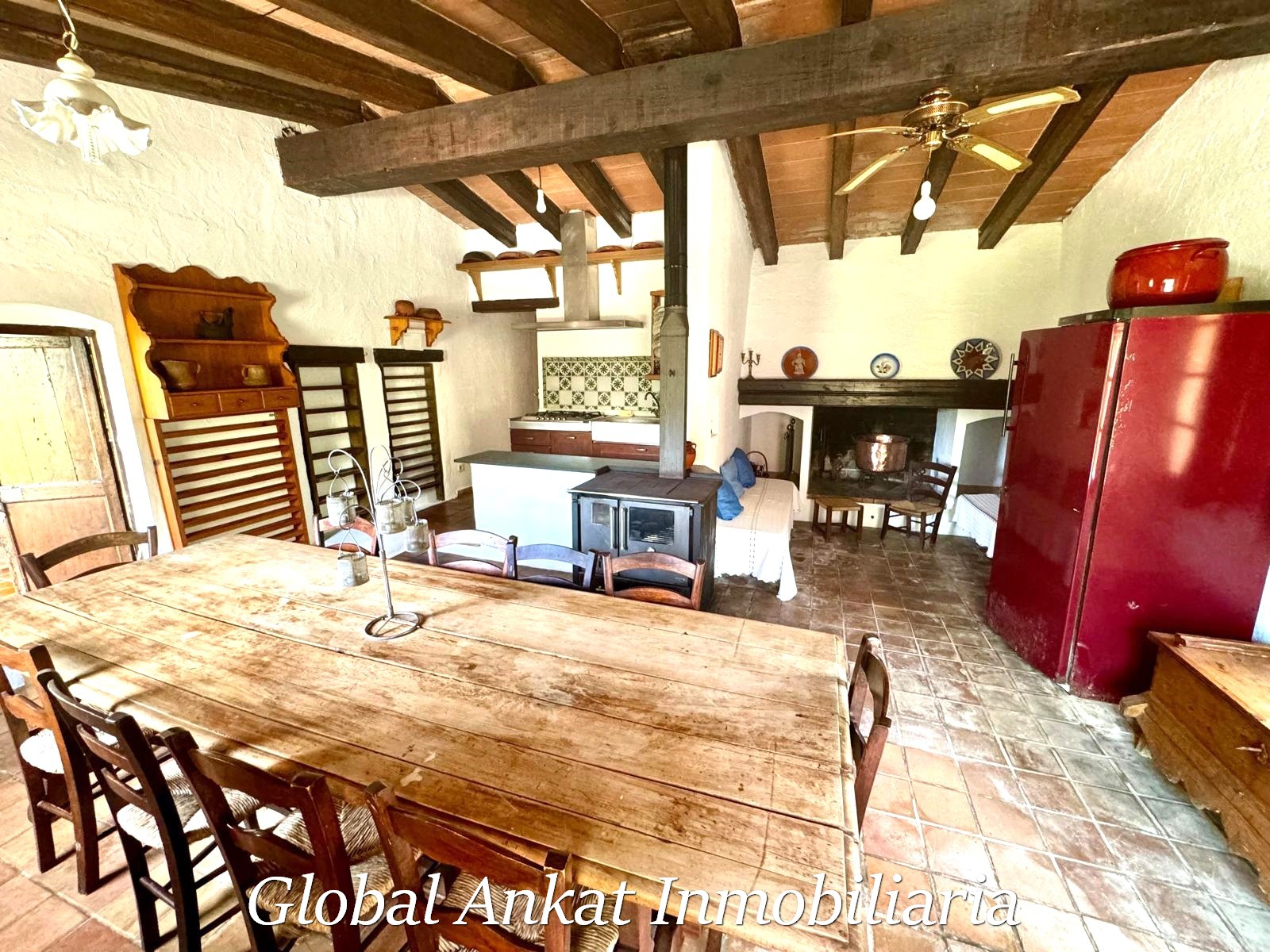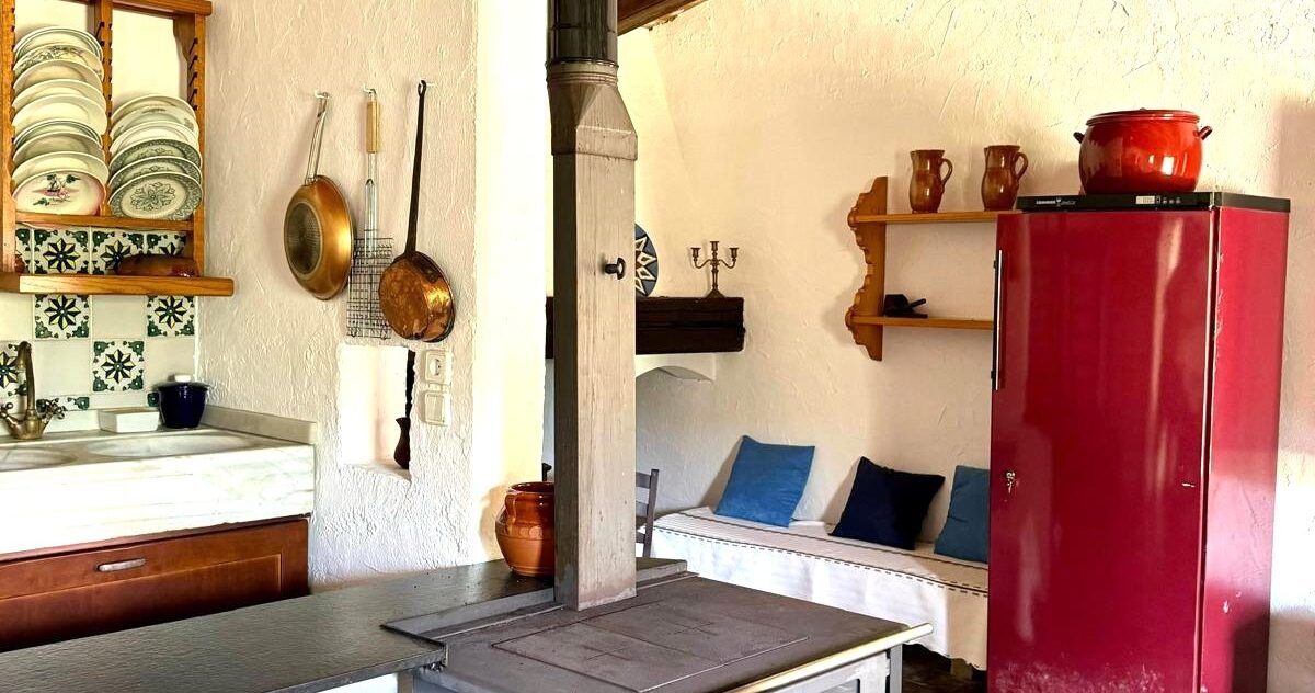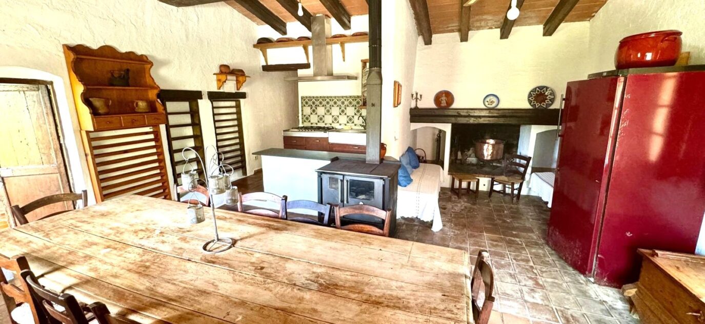 Una cocina rústica tradicional, ideal para cenas acogedoras y amantes del ambiente de montaña.