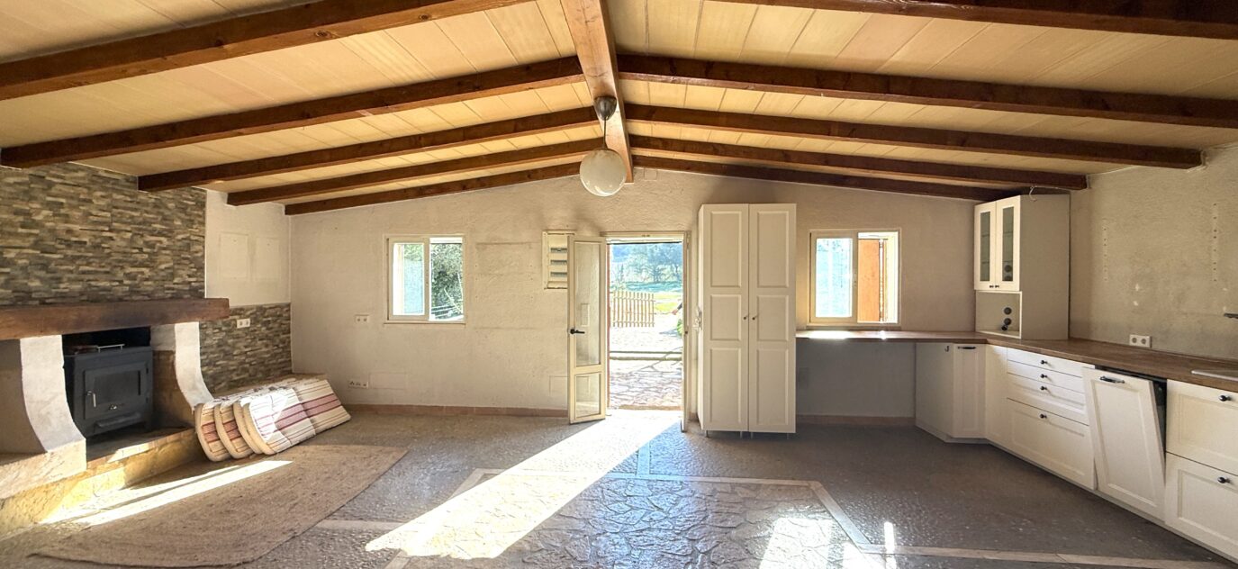 La finca está delimitada por una tradicional pared seca, lo que le confiere un encanto rústico y auténtico. Su ubicación en Camp Fret permite un fácil acceso a la vez que garantiza la privacidad y tranquilidad de sus habitantes.