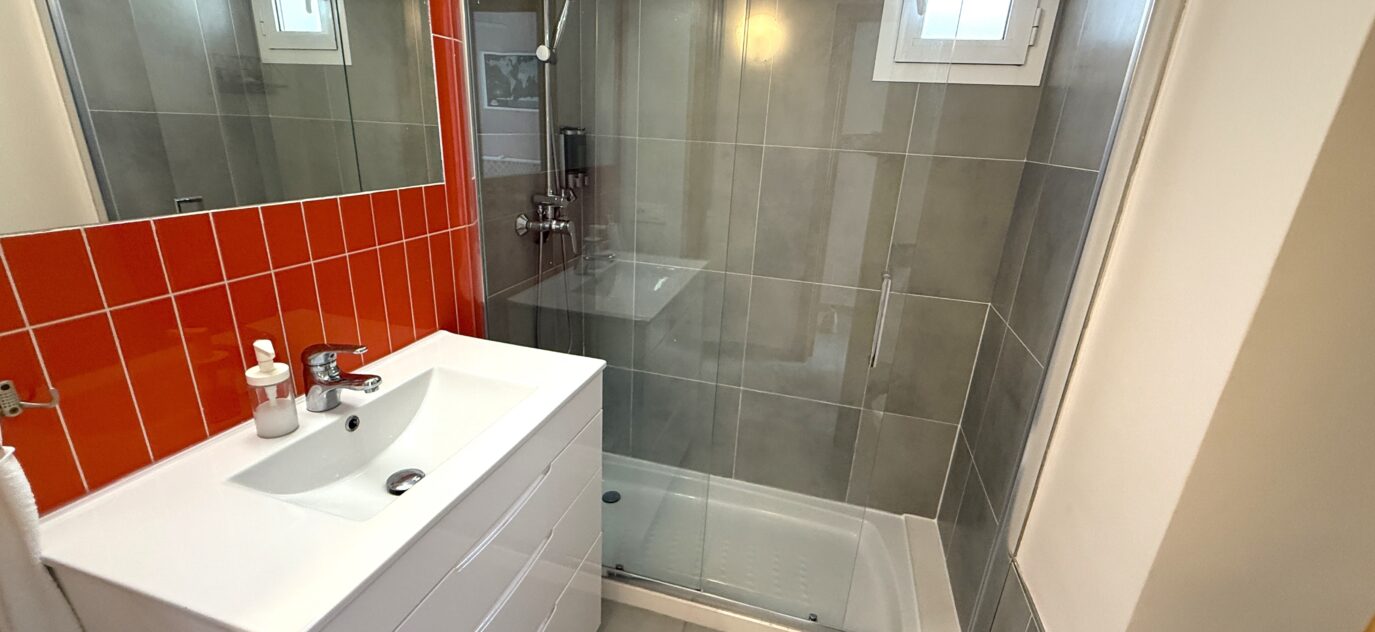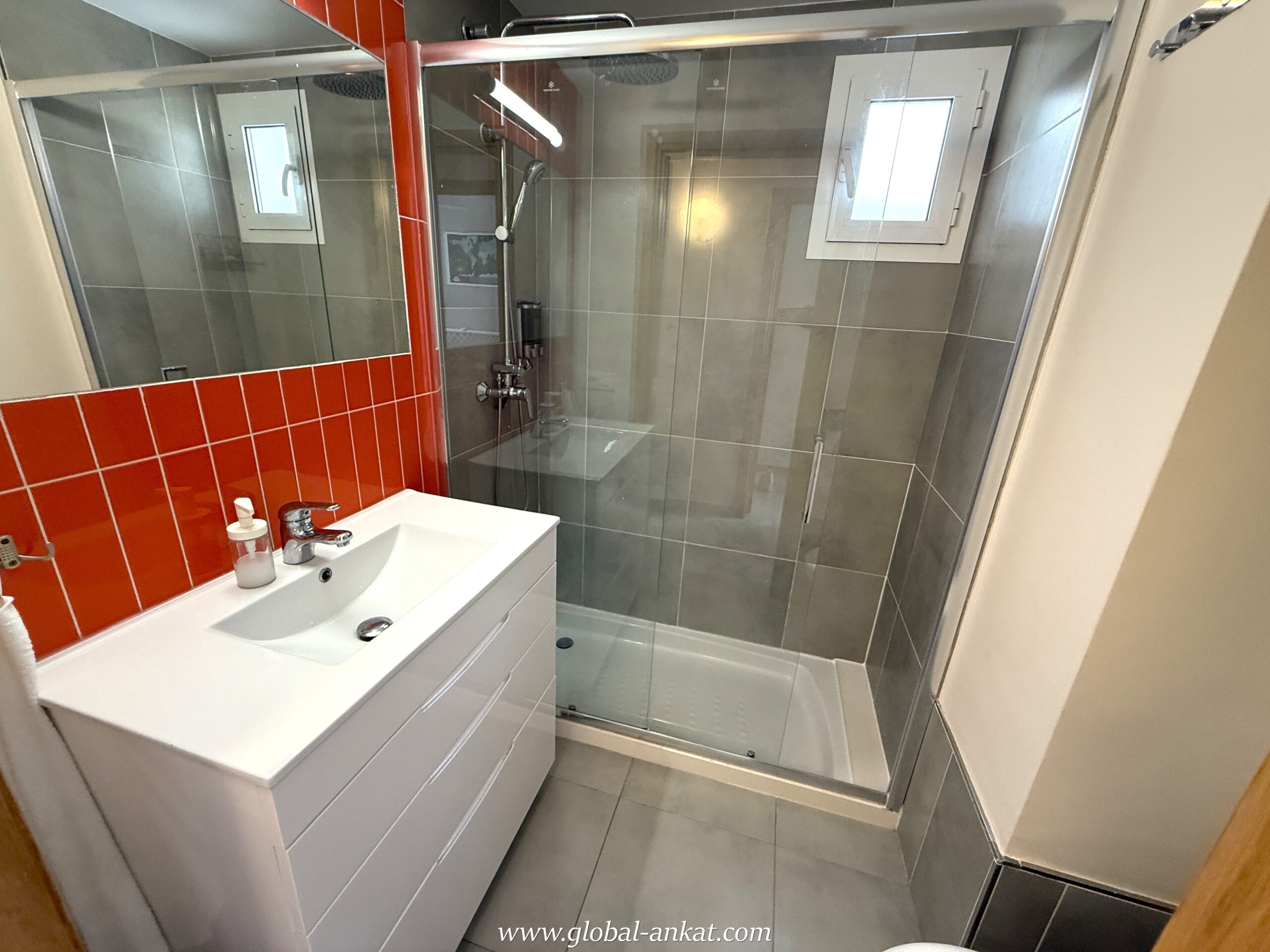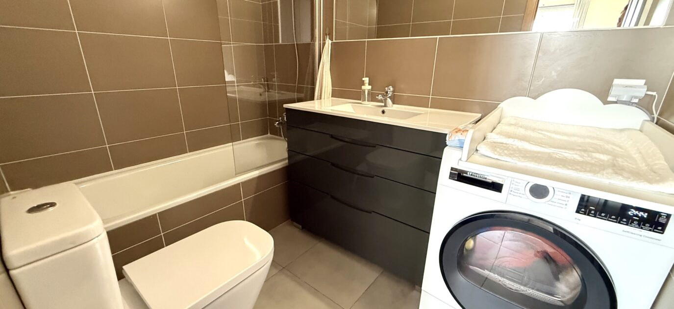 2 Baños completos: uno con plato de ducha y otro en la habitación principal con bañera (donde se sitúa actualmente la lavadora).