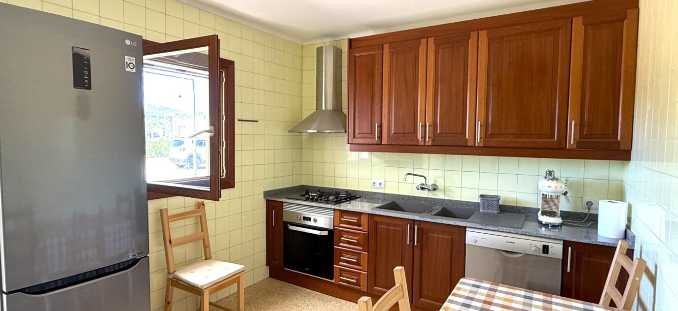 Distribución: recibidor, amplio salón comedor con chimenea (perfecto para las noches de invierno), cocina independiente con salida directa a la parcela, una práctica despensa y lavandería.
