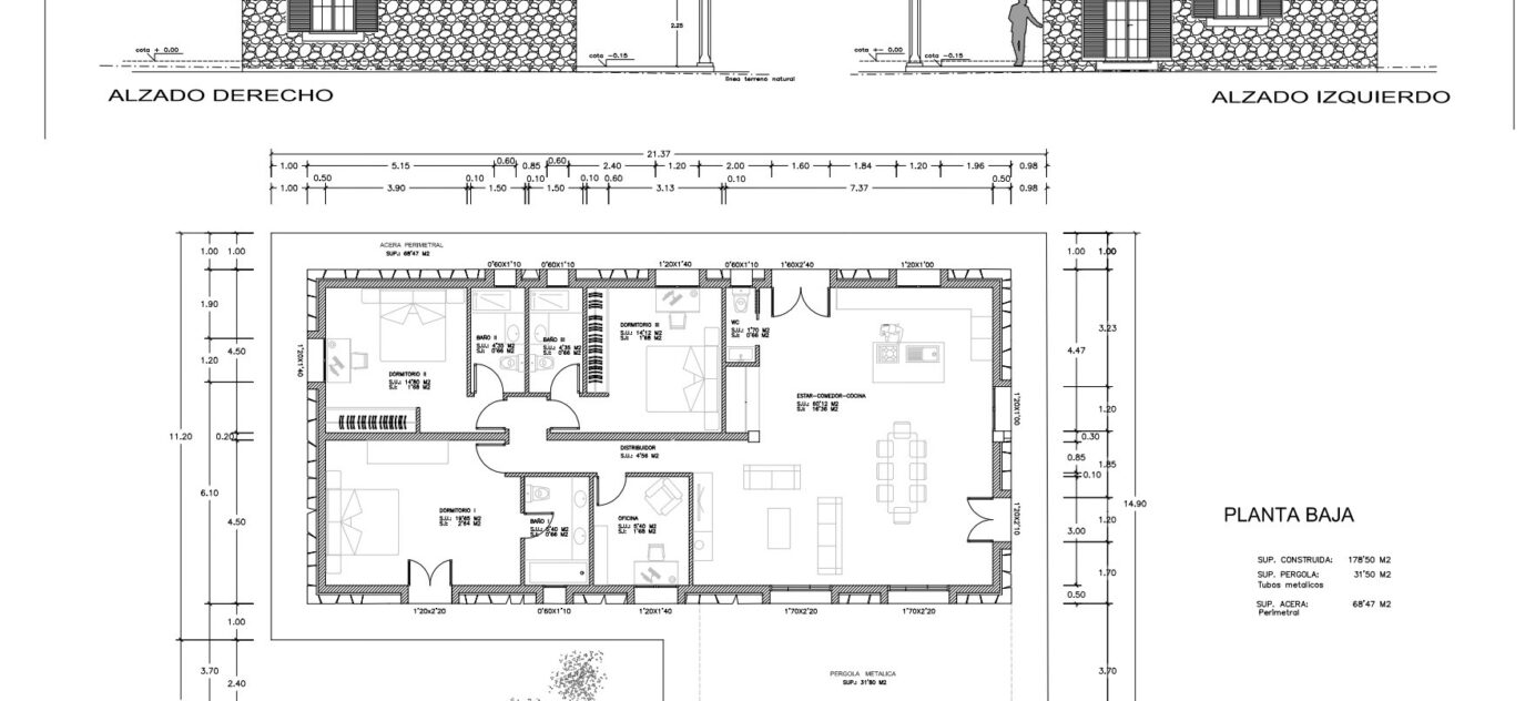 El proyecto contempla una moderna y funcional vivienda unifamiliar de 178,50 m² de superficie construida. La distribución proyectada incluye: