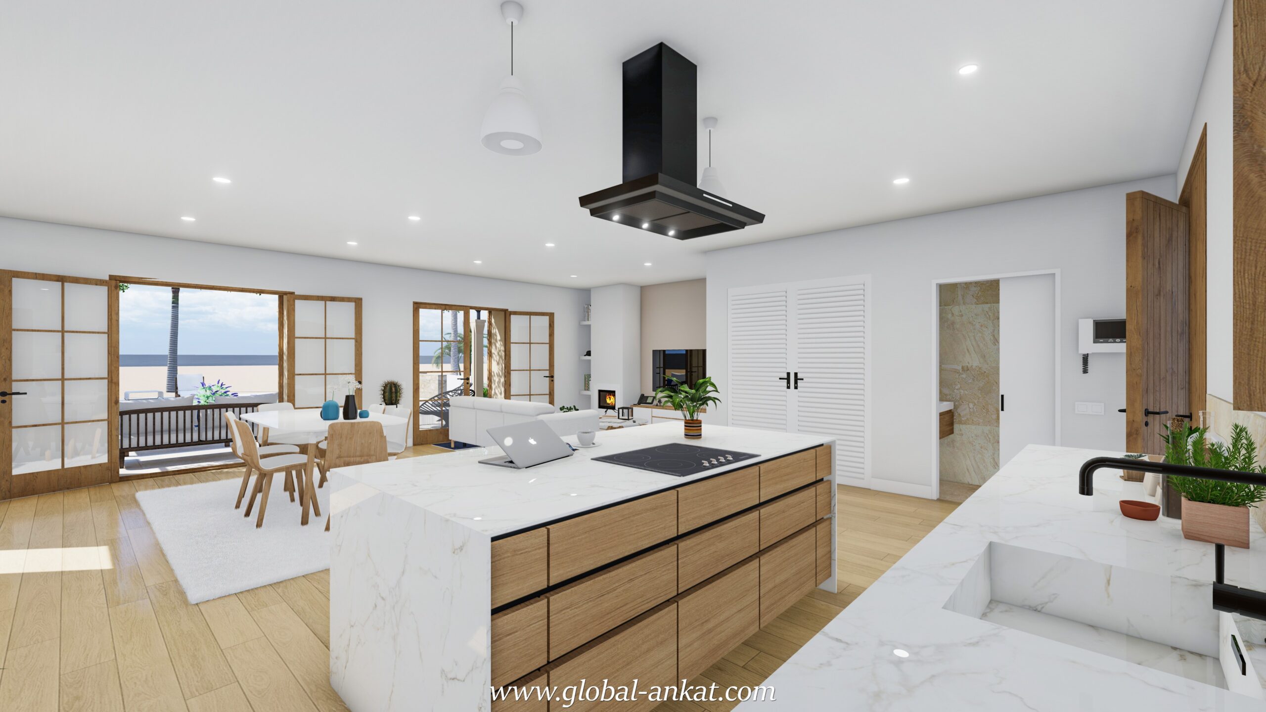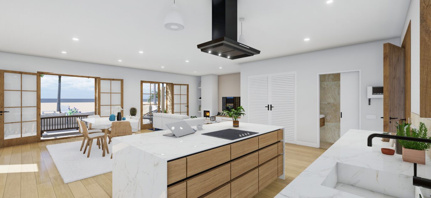 Un espacioso salón-comedor con cocina integrada (tipo open concept), creando un núcleo central diáfano y luminoso.