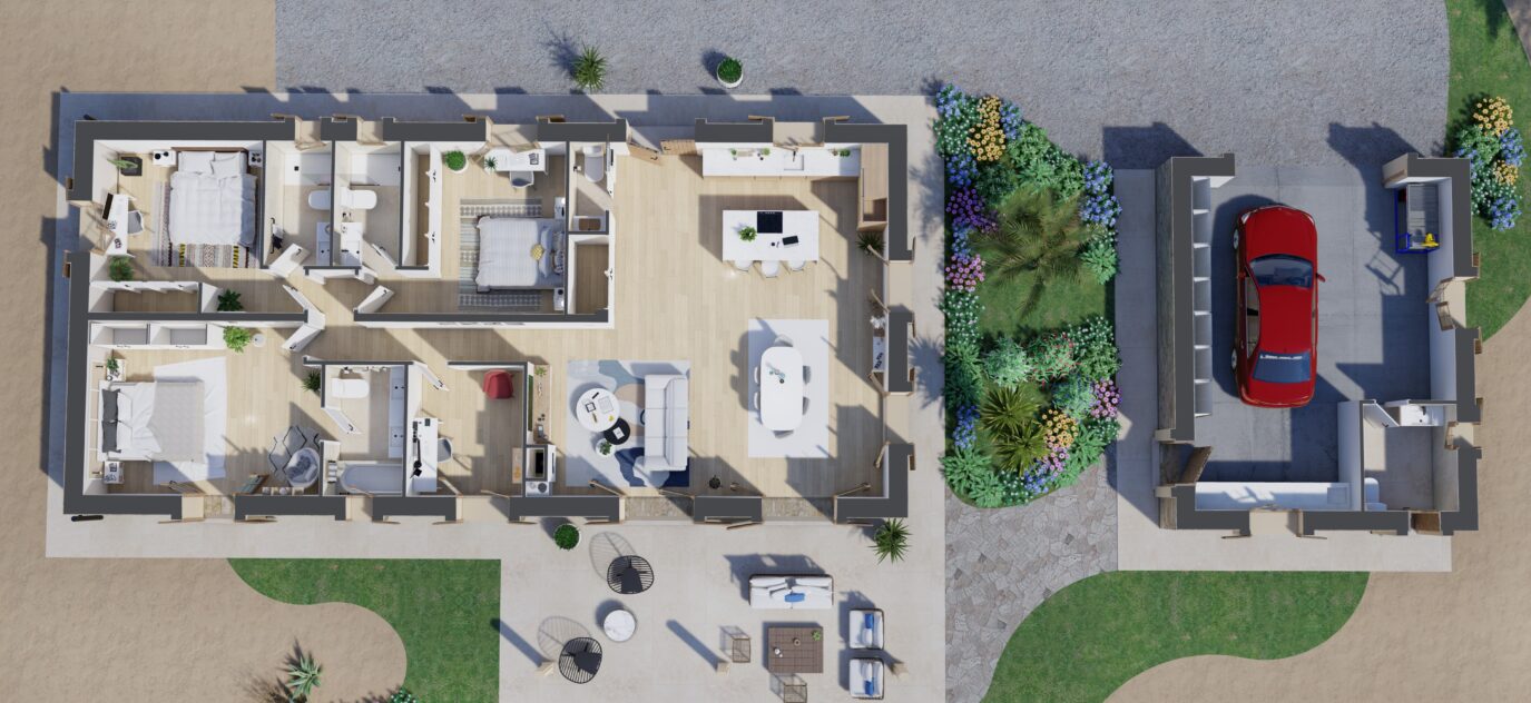 Un punto clave del diseño es su flexibilidad: la configuración interior del proyecto actual puede ser modificada y adaptada fácilmente para ajustarse a las necesidades específicas y el estilo de vida de cada familia.